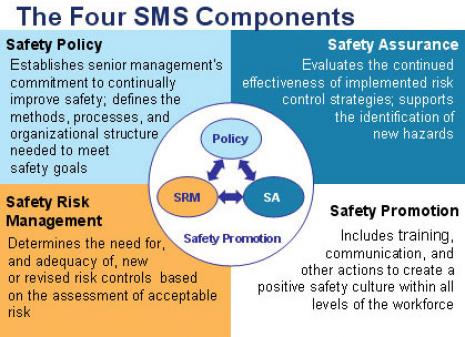 Safety Risk Management- A major part of any SMS is the organizations ability to identify and control hazards thereby reducing risk.  This requires healthy reporting culture supported by a “Just Culture” where employees feel comfortable reporting.  Hazards are identified through many different areas all of which need to be developed for an effective SMS.